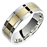 Bought this ring for my husband for a Christmas present. He hated it!! Thought it looked like a piece of jewelry from a 25 cents vending machine. Had to wait over 10 days to reach someone by phone since the company was closed. The first person took a message and never called back. The description and picture in no way fit what we actually received. It is certainly not stunning. When we actually talked to someone about returning it, we were hit with a 35% restocking fee because the ring was "custom made to our specifications". What a joke!! This is the worst item I have ever ordered from the amazon site since I began using it several years ago. Will never order from this company again. Get more detail about Allegra - Stunning Two Tone Comfort Fit Wedding Band for Him & Her! Custom Made! Choose your Size..