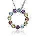 Sterling Silver Multi-Gemstone Circle Pendant, 18"